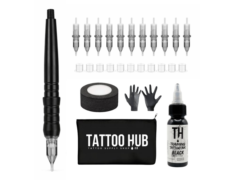 Kompletní handpoke tetovací sada, která obsahuje vše potřebné k tetování technikou handpoke. Součástí sady je i tréninkový inkoust určený pro tetování na umělé kůži. Pro možnost tetování na lidskou pokožku stačí dokoupit EU REACH schválený tetovací inkoust a můžeš okamžitě začít tetovat.