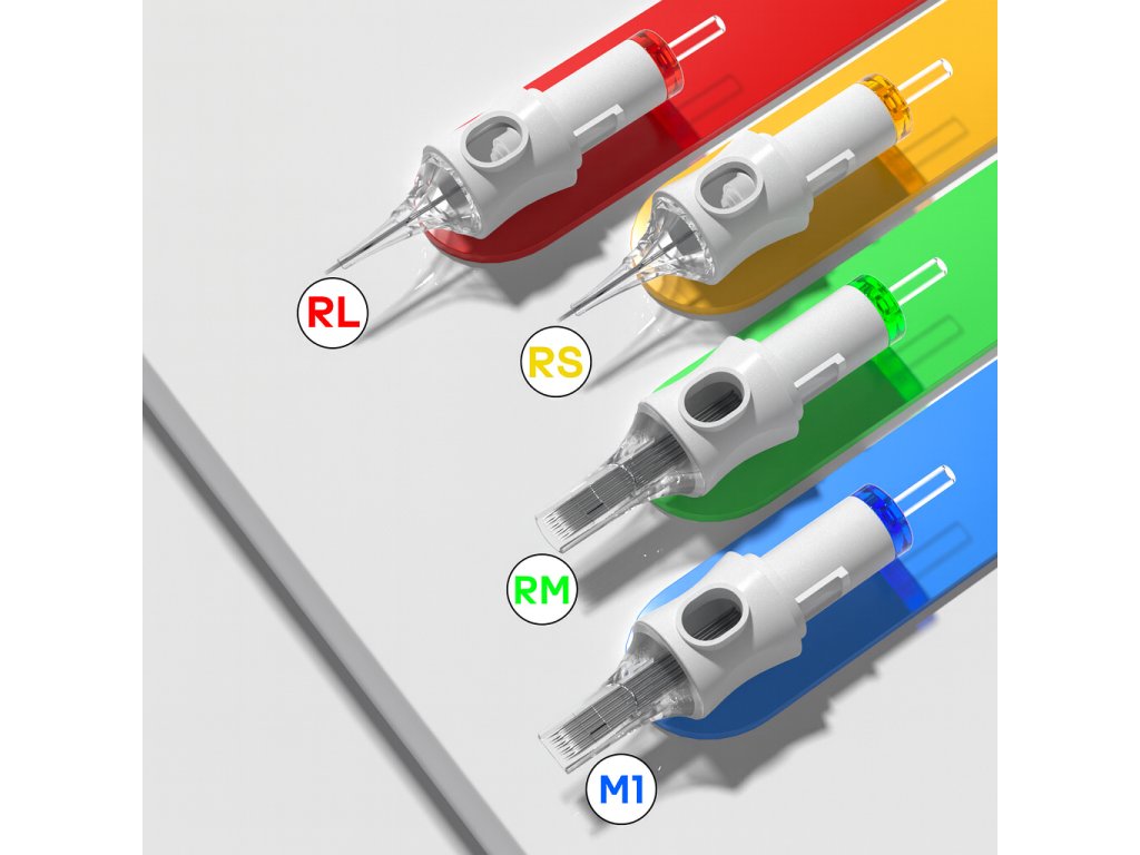 Kromě kvalitních materiálů cartridge TattooHub PRO vynikají také skvělým funkčním designem, který ozdobí každý strojek. Jednotlivé typy cartridge jsme navíc barevně odlišili, aby bylo jejich používání co nejkomfortnější.
